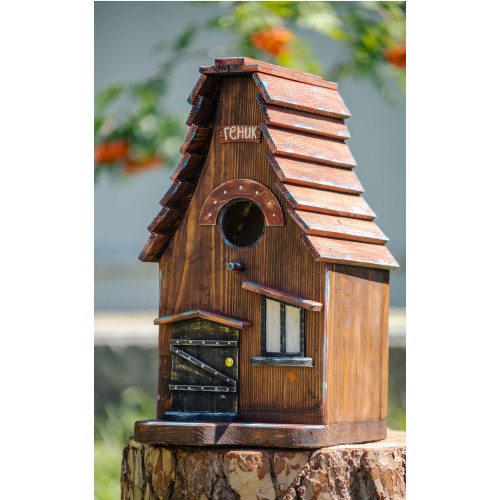 Шпаківня “Дім Геника”. Дім для пташок (шпаківня), виготовлена із дерева, та оброблена захисною декоративною пропиткою. Розміри 37×26×18см*. Кронштейн довжиною-35см.