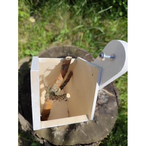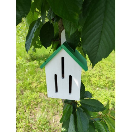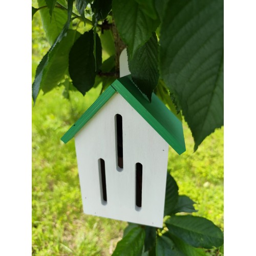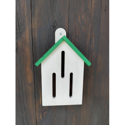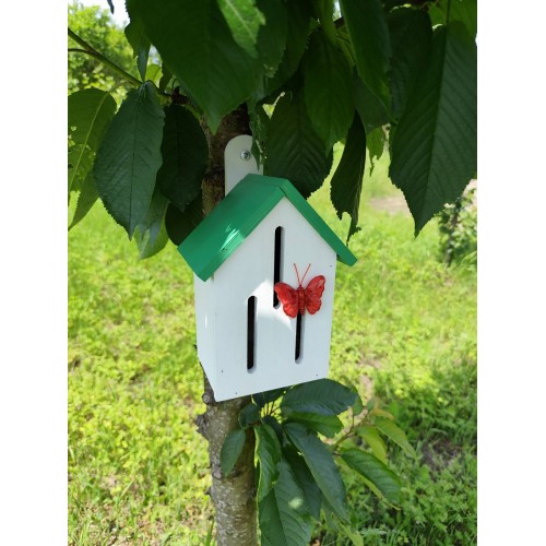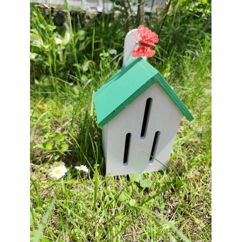 Виріб виготовлений з екологічної фанери, що є безпечною для довкілля та добре підходить для використання на відкритому повітрі. Вертикальні щілини в конструкції відповідають природним потребам метеликів і роблять будиночок зручним для їх перебування.