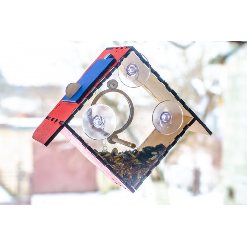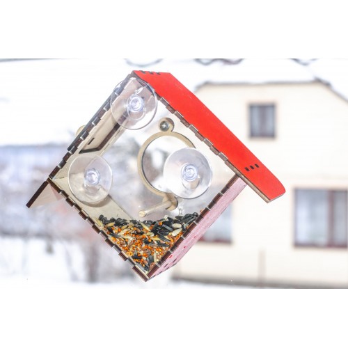 Годівничка на присосках на вікно - чудовий варіант, якщо Ви живете у багатоповерхівці, але любите спостерігати за пташками та хочете допомогти їм пережити зиму. Годівниця має дві міцні присоски, для надійності є страхувальна мотузочка - для додаткового кріплення зсередини квартири. В комплект входять: 1. Годівничка з присосками 2. Жердинка 3. Волосінь (не ме..