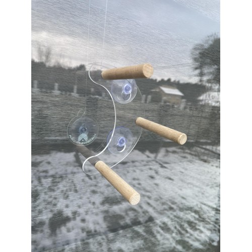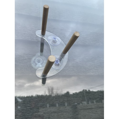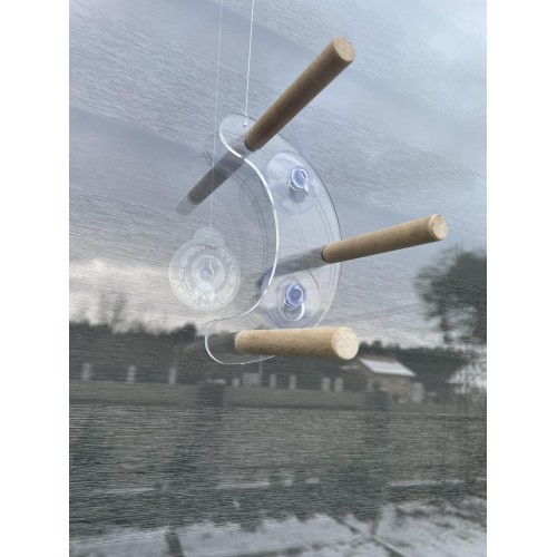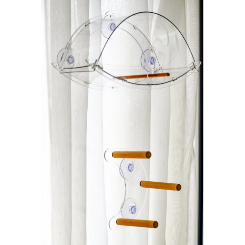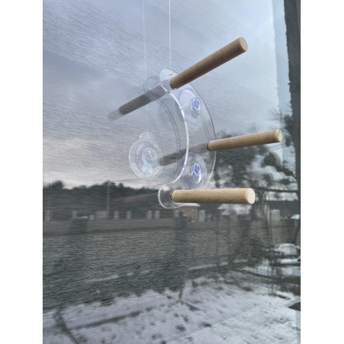 Присіст для птахів "Місяць" - це "зал очікування для птахів" - тут птахи можуть чекати своєї черги поласувати, поки годівниця зайнята.Присадка має міцні присоски, для надійності є страхувальна мотузочка – для додаткового кріплення зсередини квартири.